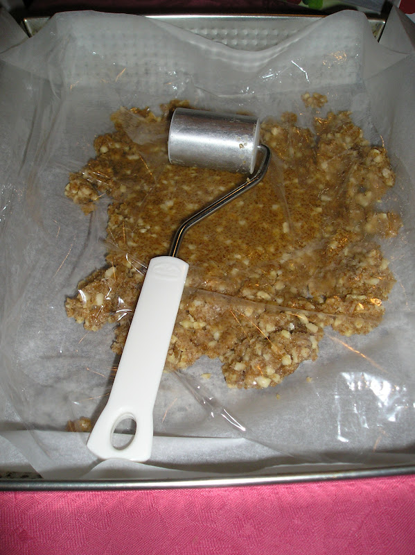 Desmoldar tras cinco minutos de reposo, y dejar enfriar totalmente antes de cortar. Puede cortarse en pequeños cuadrados o rectángulos o sacar formas con cortadores de galletas.