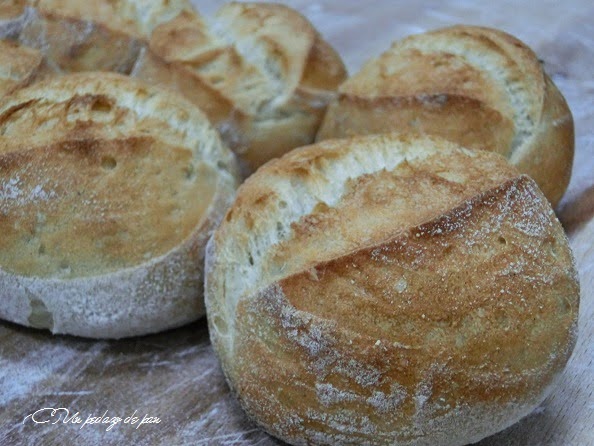 Estos panes llevan una primera fermentación muy larga, hasta alcanzar un gran desarrollo y gasificación. Sin formado, se corta sobre una cama de harina y se colocan directamente en el cargador -o la pala- de horno.
