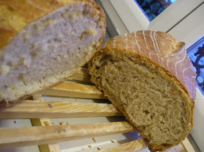 He hecho dos pruebas con las harinas Allinson británicas: dos panes muy integrales y muy hidratados. El segundo ha sido este pan al 70% de hidratación. En casa le han llamado el pan habichuela.