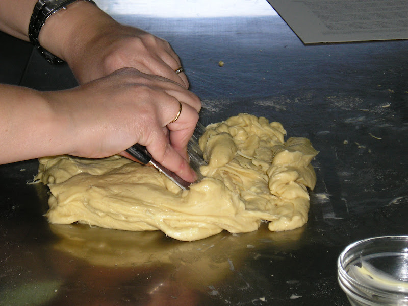 La mañana cundió mucho: hicimos tres tipos de donuts, dos de ellos de masa fermentada (de panadero) y una de masa abizcochada.Tuvimos, claro, que lidiar con el amasado y la incorporación de la mantequilla tanto para una masa blanca y otra de chocolate, ambas con una roma a vainilla delicioso.