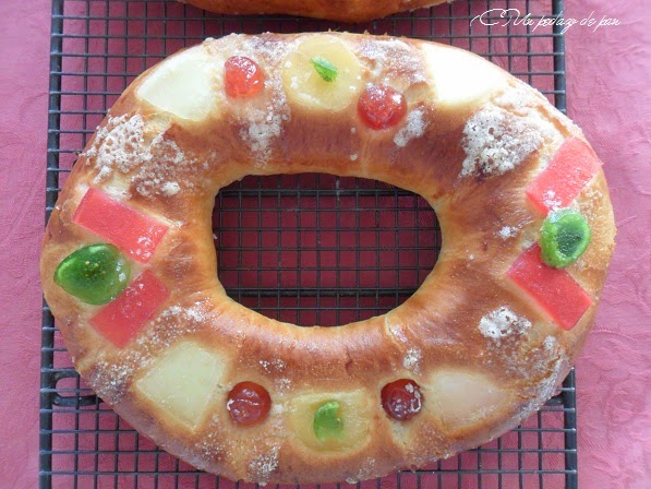 Dejamos enfriar y disfrutamos en buena compañía. Este dió para poco porque era uno de los roscones de 200 gramos de masa que habéis visto en las bandejas de más arriba… (comprobad el tamaño del agujero interior antes de la segunda fermentación y después del horneado: multiplica su volumen por tres … o más).