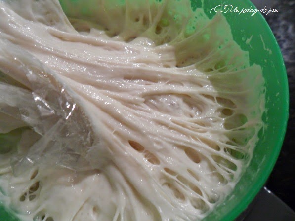 - He sustituido el prefermento sólido de otras ocasiones por un poolish al que dejo fermentar un par de horas y luego refrigero en nevera de 12 a 24 horas más. Creo que el uso del prefermento líquido (bueno, con harina de fuerza no queda realmente líquido sino muy viscoso) facilita la extensibilidad de la masa, lo cual ayuda tanto en el formado del roscón como en su crecimiento sin roturas en el horno. Claro está que a cambio hay que usar buenas harinas de fuerza.