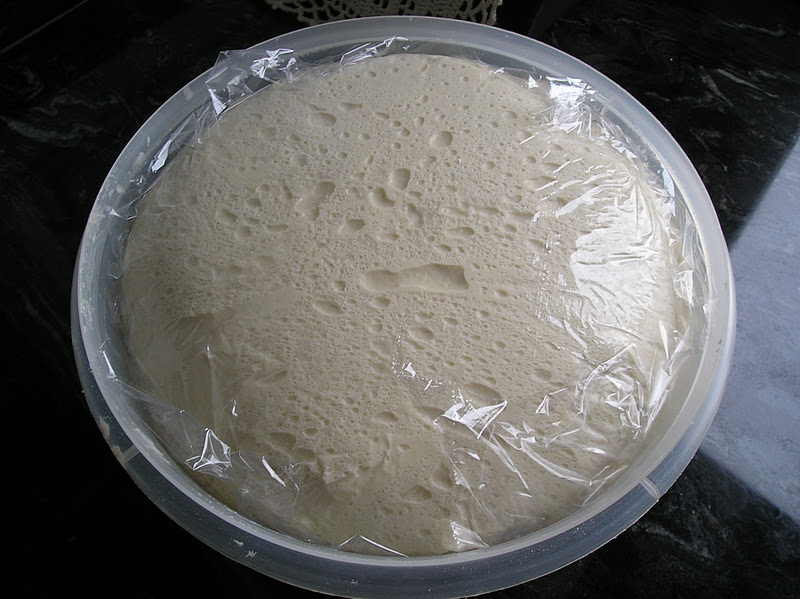 Dejar reposar en el cuenco bien tapado durante dos o tres horas y luego refrigerar en nevera de 12 a 15 horas. La masa fermentará lentamente desarrollando todo su aroma.
