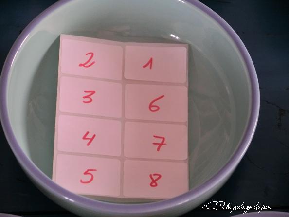 Hemos tomado ocho cuencos iguales y los hemos numerado.