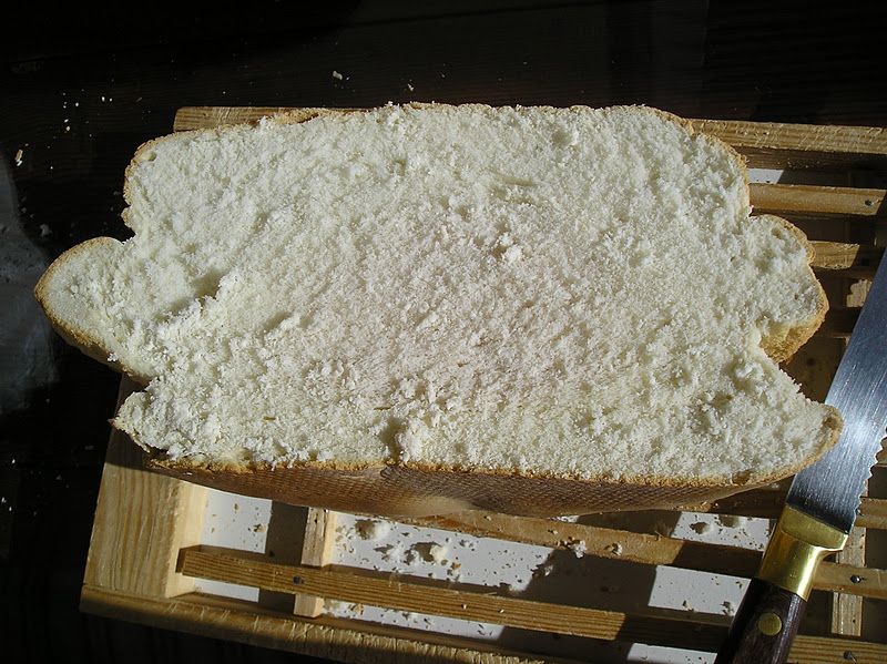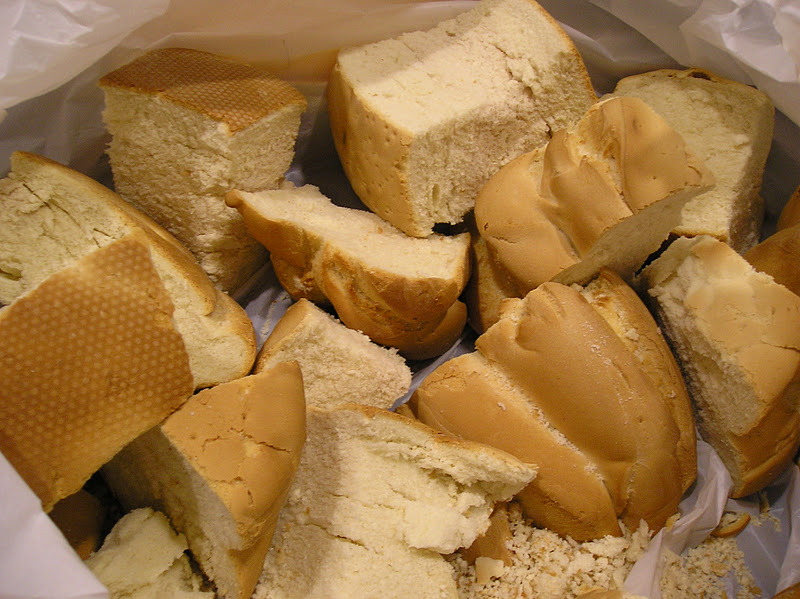 Tras comprar el pan, se parte en trozos grandes para facilitar que se vaya secando y oreando.