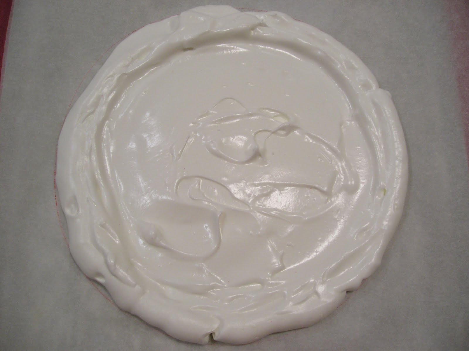 Con una espátula o con una manga pastelera, rellenar los círculos dibujados en el papel de hornear con el merengue. Hacer un reborde más alto en el anillo exterior.