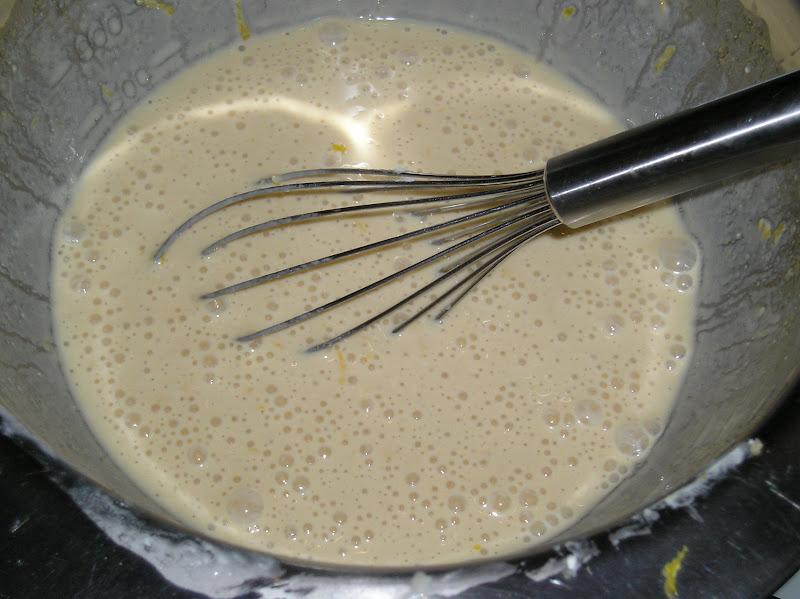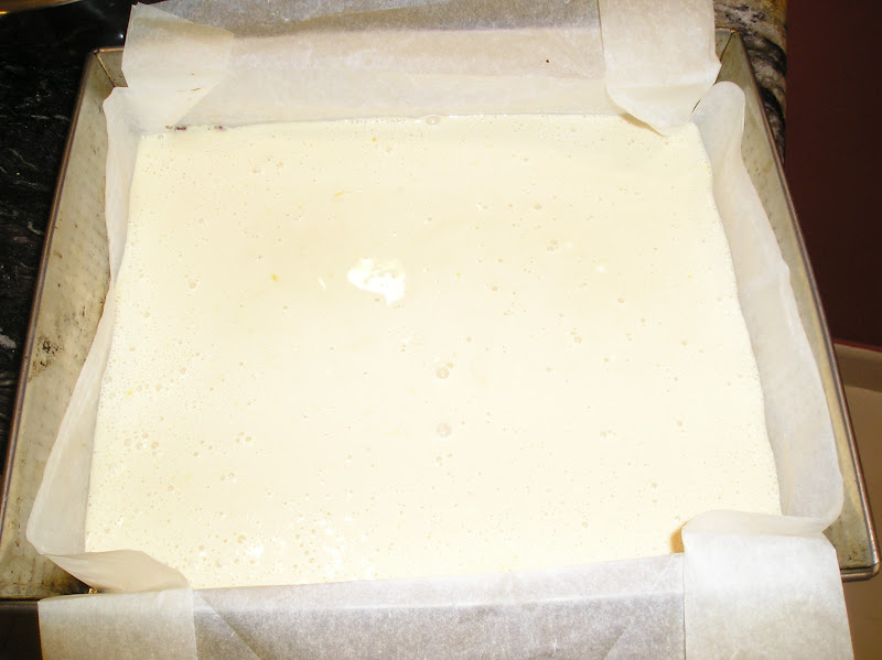 Cuando esté cocida la base, sacarla del horno y verter por encima la mezcla de queso, limón, huevo y azúcar.