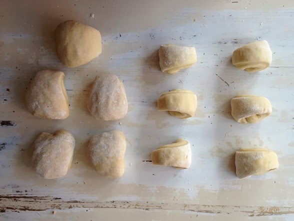 Si se quieren bollos redondos, tal cual están boleados, colocar sobre una bandeja de horno forrada con papel de hornear.