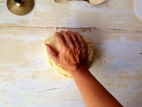 Una vez bien fermentada la masa, sacar sobre la encimera ligeramente enharinada. Desgasificar bien la masa, para que luego obtengamos una miga cerrada, ligera y regular.