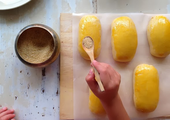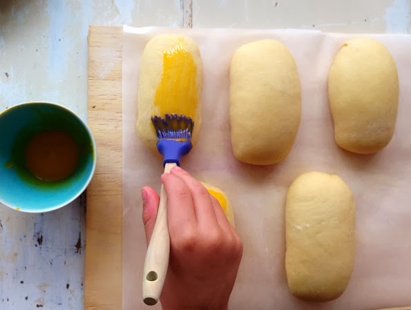 Con un huevo bien batido con una pizca de agua, pincelar todos los bollos.