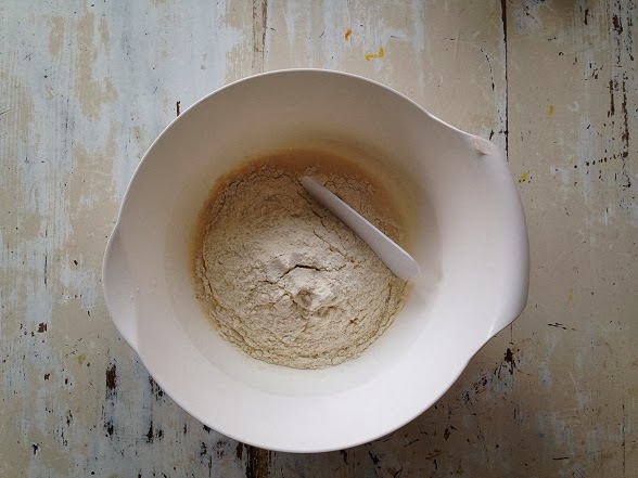 Masa principalEn un cuenco, pesar las harinas y mezclarlas (si no has hecho