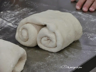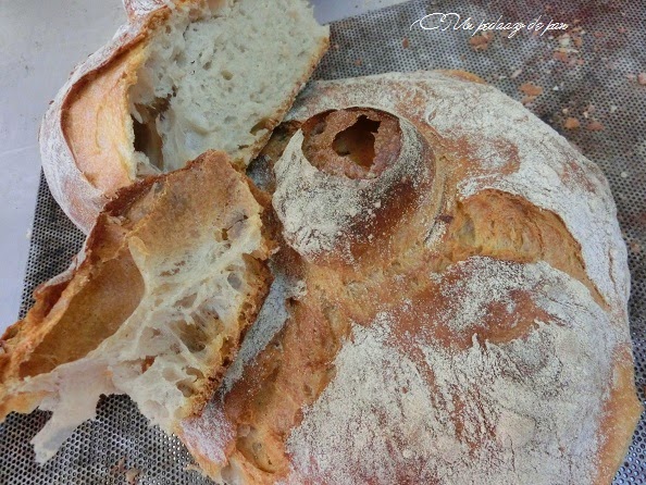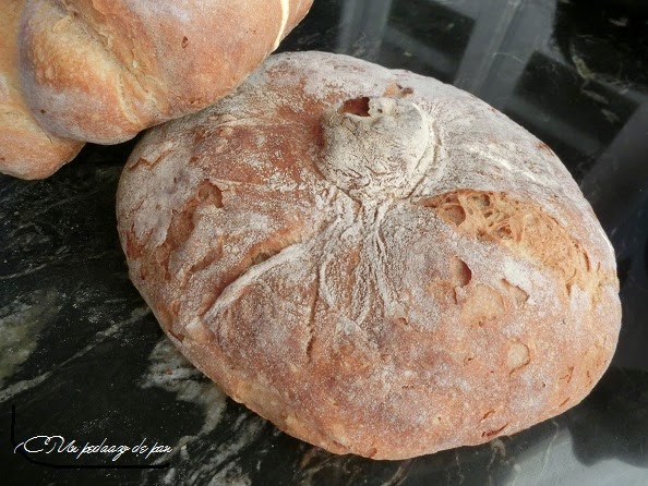 El pan de masa madre no era un pan muy hidratado (al 64%). Con un formado original, era un pan bello y más rico aún -si cabe- que bonito.