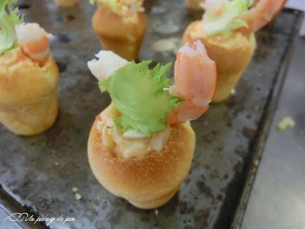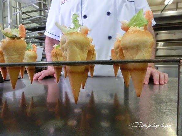 Dentro de la misma línea, unos helado salados: conos de brioche para rellenar con una ensaladilla y acabar con un adorno de gamba.