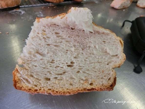 El pan gallego era la estrella de la jornada con su altísima hidratación de casi un 100% y con harina país (sólo un 25% era harina fuerte). Panes así son los que me hacen ver lo lejos que estoy de conseguir saber manejar -de verdad- una masa.
