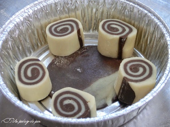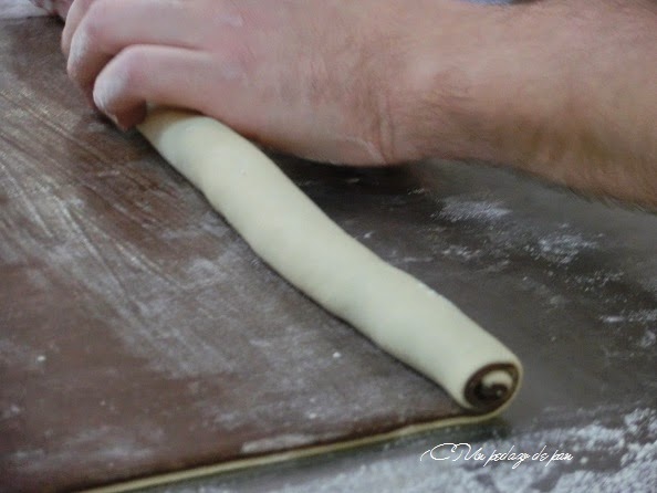 El primero, el rolling de chocolate y almendra es una pieza sencilla, de brioche bicolor y gianduja.