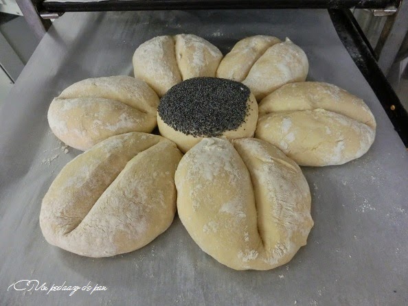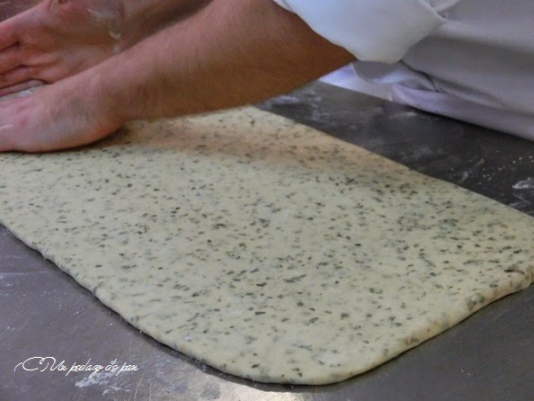 El pan de masa madre no era un pan muy hidratado (al 64%). Con un formado original, era un pan bello y más rico aún -si cabe- que bonito.