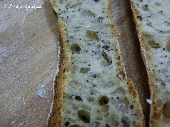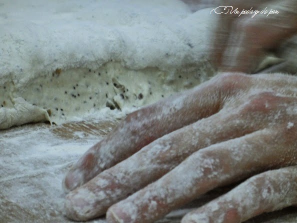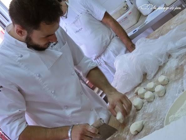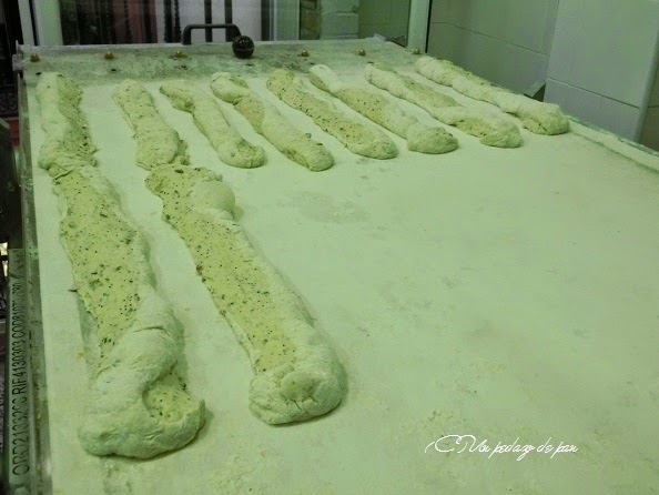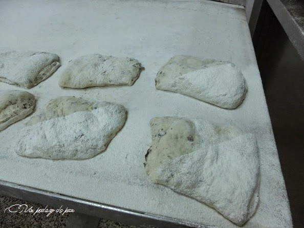 Estos panes llevan una primera fermentación muy larga, hasta alcanzar un gran desarrollo y gasificación. Sin formado, se corta sobre una cama de harina y se colocan directamente en el cargador -o la pala- de horno.