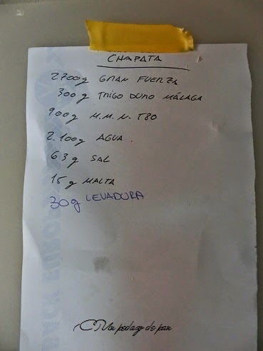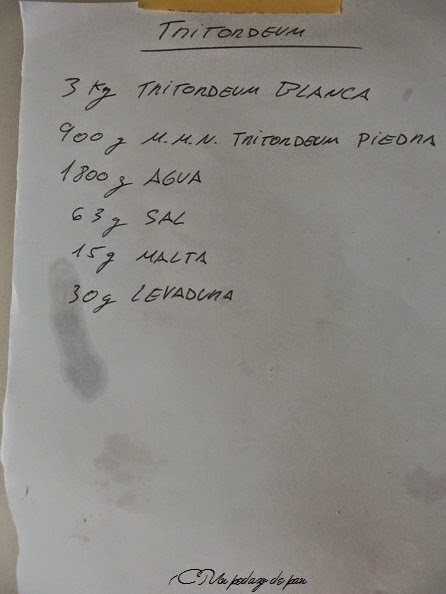 Pero volviendo a las masas de la jornada, fueron varias de trigo, una de tritordeum (tritordeum es el pan de la foto inicial) y otra de centeno, recorriendo la escala de las hidratación entre el 100% del centeno hasta el 60% del pagés, pasando por el 65% del tritordeum o el 74% de las chapatas.