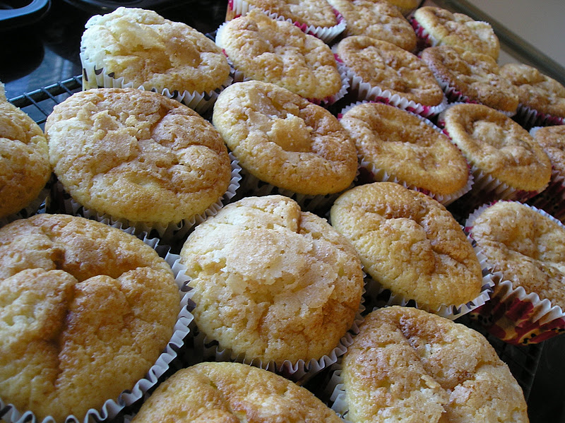 Hornear a 210º durante 20 minutos o hasta que tenga color dorado y al pincharla estén bien hechas (la aguja debe salir limpia y sin masa adherida). Y con estas proporciones veréis cómo se deshinchan nada más salir del horno: eso sí, un sabor delicioso, una textura de nube, pero tan poca presencia como esto.
