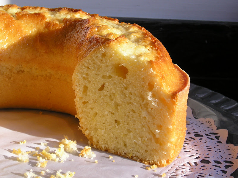 En este caso, en lugar de cápsulas de magdalena, utilicé un molde tradicional redondo con agujero en el centro, engrasado y enharinado. El molde de color claro permite obtener un bizcocho con la superficie exterior clara y poco tostada.