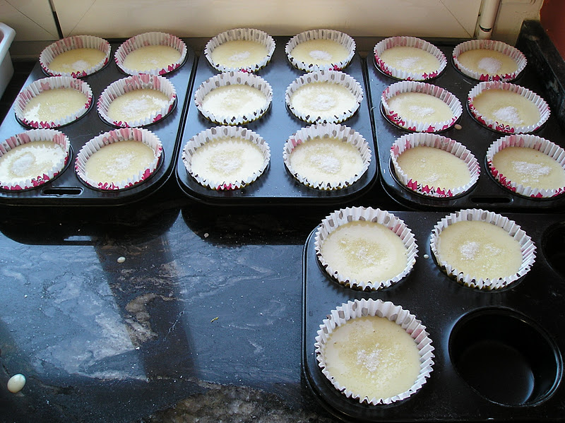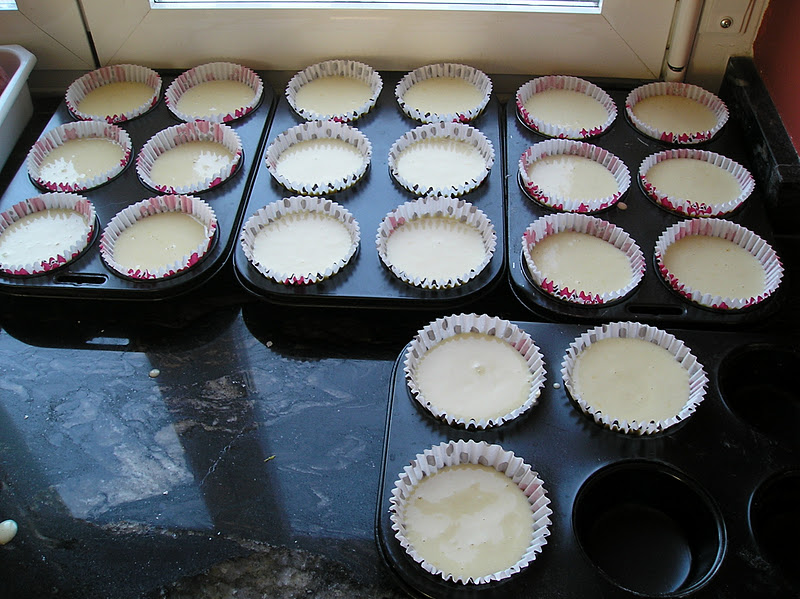 Calentar el horno a 210º. Colocar cápsulas de magdalena en moldes: en este caso hicieron falta 21 cápsulas.
