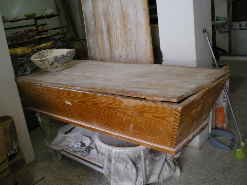 En cambio, en la Panadería de Roberto González nos atendió él mismo y con toda paciencia. Gracias a que llegamos tarde y que ya toda la tarea de amasado, formado, horneado estaba terminada, nos pudo dedicar casi una hora a enseñarnos su tahona y a responder a nuestras interminables preguntas, sólo interrumpido por alguna clienta que venía a comprar los últimos panes que le quedaban por despachar aquella mañana.