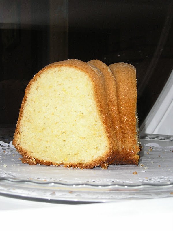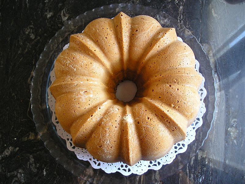 Cocer el bizcocho 50-60 minutos, hasta que al pincharlo con una guja, esta salga limpia. Procurar no abrir el horno antes de que transcurran 45 minutos de cocción, para que el bizcocho no se baje. Una vez fuera del horno, dejar reposar 3-5 minutos antes de desmoldarlo. Voltearlo sobre una rejlla, y dejarlo enfriar completamente antes de servir. Puede adornarse con azúcar glas o con cobertura de chocolate, moka, etc.