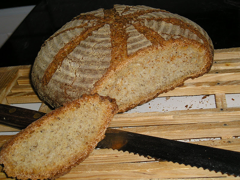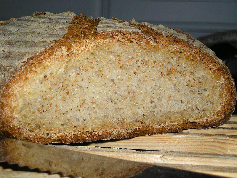 La prueba de la cata nos dejó aún con otra sorpresa: no tenía sal. Yo me tenía que haber dado cuenta, pues el pan fermentó inusitadamente rápido para llevar MM y muy poca, muy poca levadura seca. Pero es que hay veces que hasta lo más evidente se me escapa, contenta como estaba de recuperar hábitos saludables y de compartir nuevamente un trozo dehogaza casera con los míos.