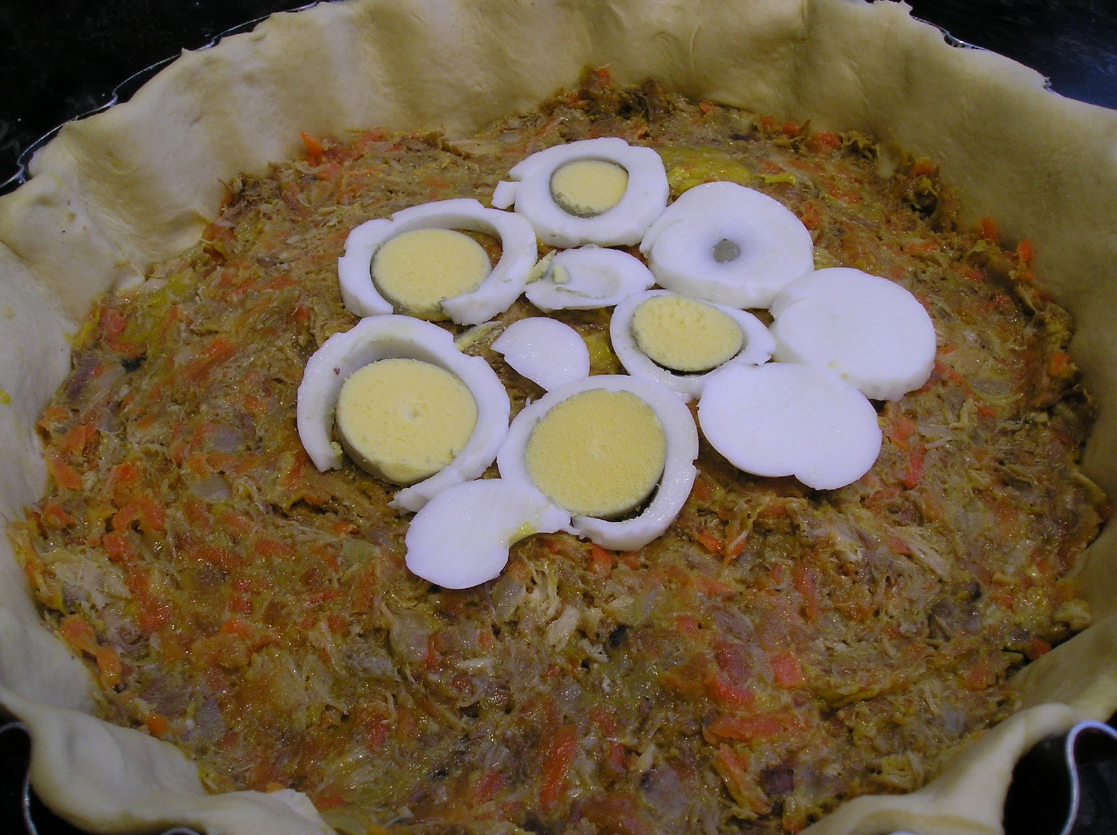 Rellenar con la preparación. Cubrirlo con huevo duro cortado a rodajas.