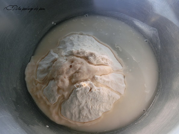 Este pan se inicia con unas preparaciones previas muy simples de 6 a 12 horas antes de elaborar la masa propiamente dicha o masa principal del pan: el soaker y el prefermento.
