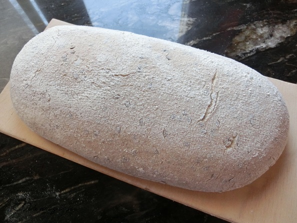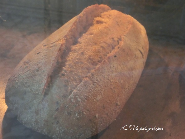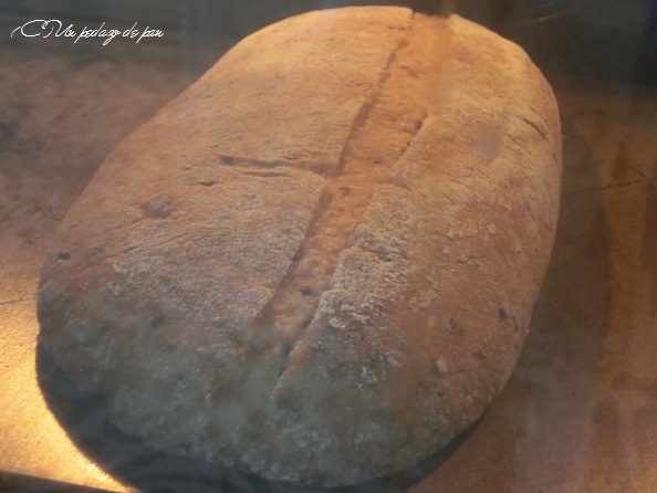Probar la resistencia de la masa con el dedo: si al levantarlo se puede contar hasta uno, debemos llevar ya el pan al horno. Volcar sobre una pala, greñar y hornear con mucho vapor durante 40 minutos.