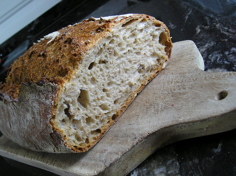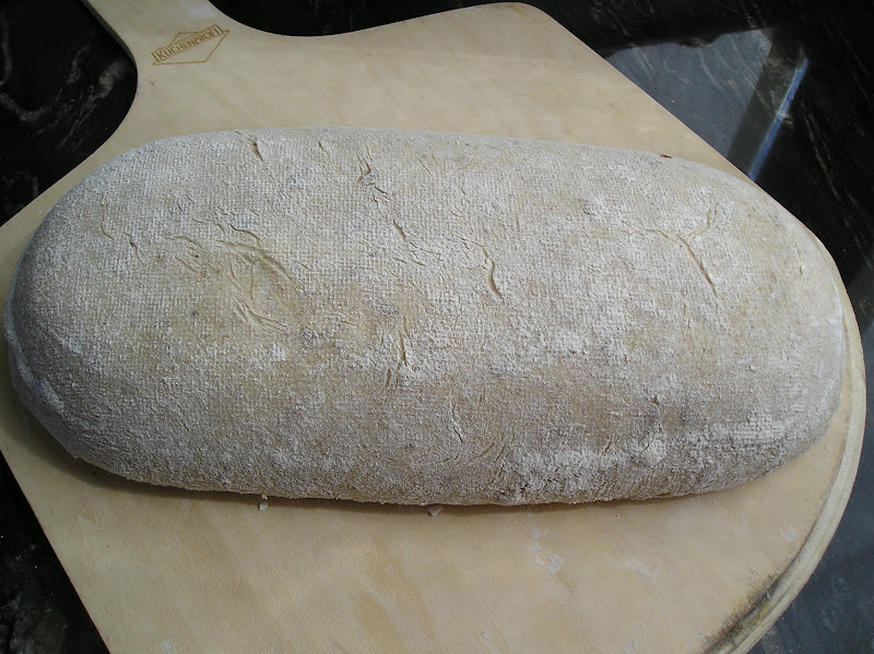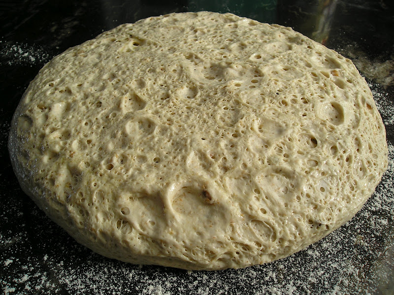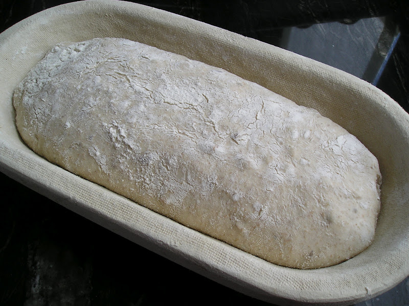 Este pan se amasa por la noche y se hornea al día siguiente. La primera fermentación se hace, por tanto, en frío (en la nevera si la temperatura ambiente es superior a 12-14º). Ello contribuye a desarrollar los sabores del pan.