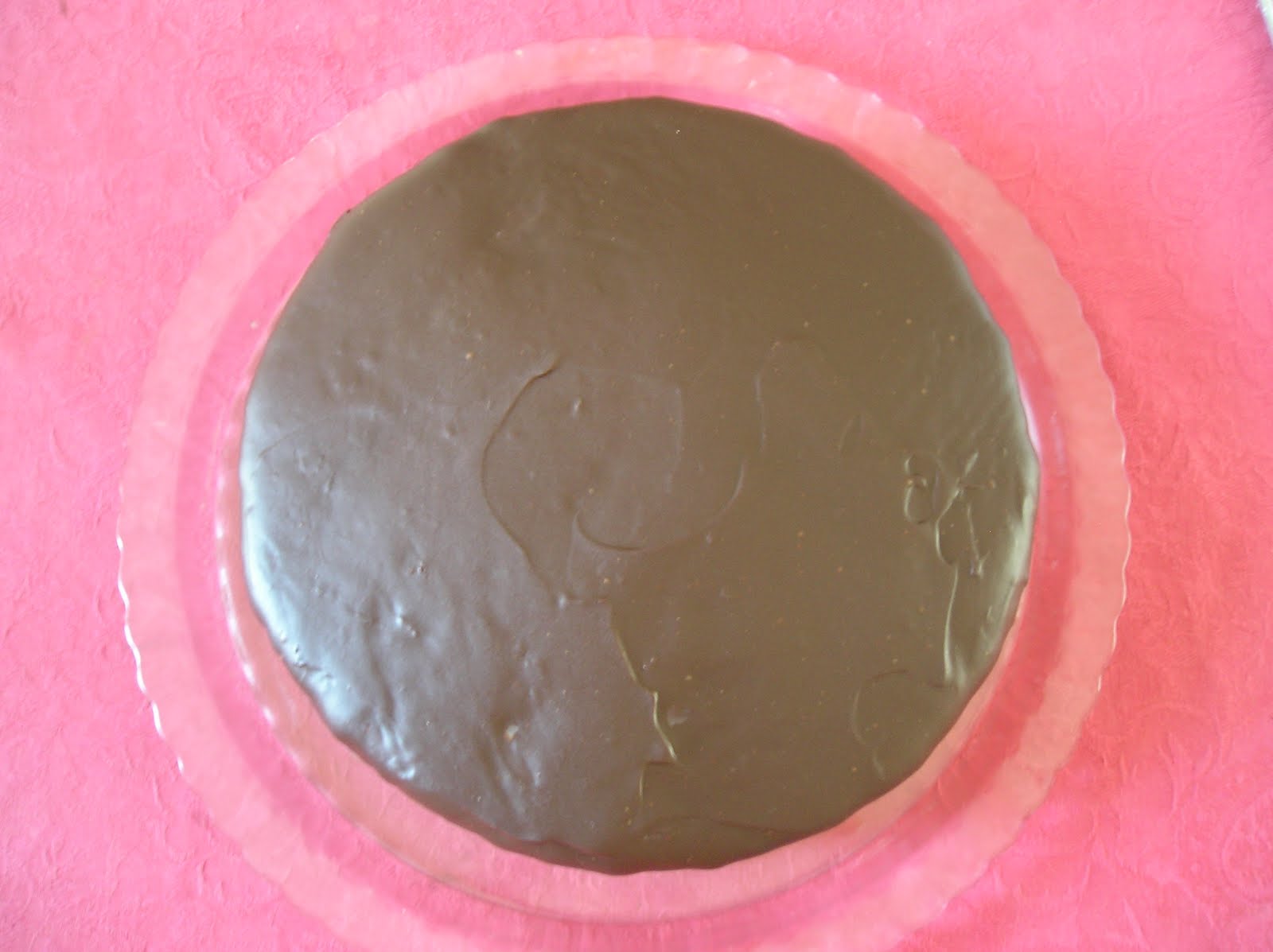 Media hora antes de recubrir la tarta, preparar la cobertura de chocolate y dejarla templar. Sacar la tarta de la nevera y recubrirla. Enfriar en la nevera.