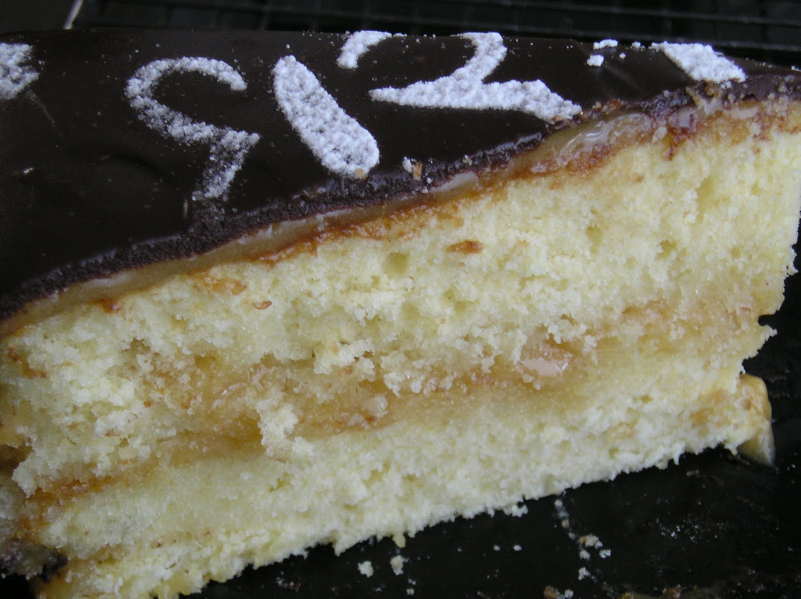King Arthur Flour, todo ello coronado por una cobertura de chocolate tradicional (una ganache al 50% de nata, respecto al chocolate).