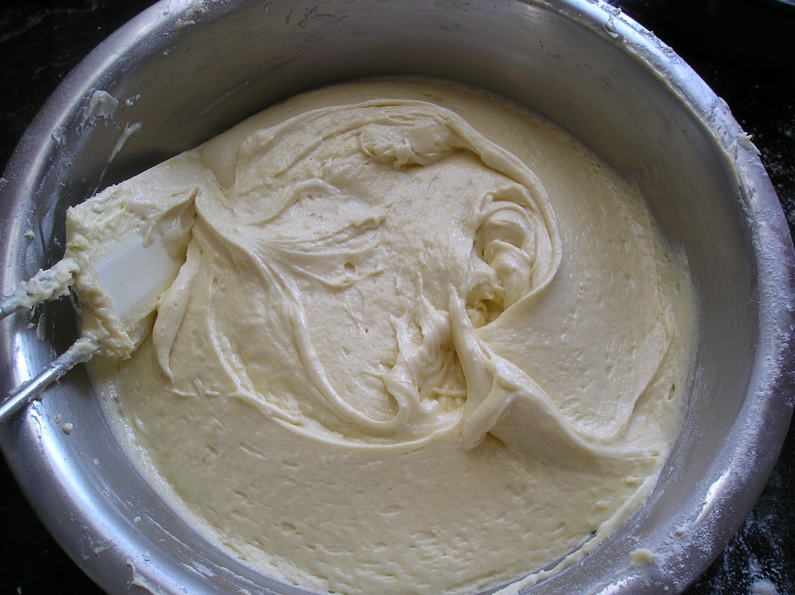 Tamizar la harina y añadir en tres veces (un tercio de la harina cada vez) a la mantequilla batida con el azúcar y lso huevos, alternando con la leche de coco (la mitad de la leche de coco cada vez. Se comienza, por tanto, añadiendo harina y se termina también con harina.