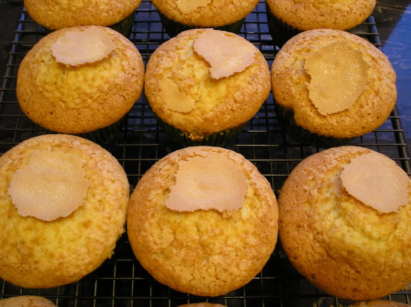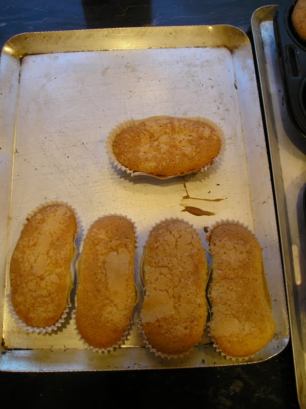Estas magdalenas se cocieron mientras terminaba de tostarse la corteza del pan habichuela. Hay que ser ecológicos y aprovechar al máximo las calorías que produce el horno. Pensé que como las magdalenas necesitan tan poca cocción, podían hacerse en los últimos 15 minutos del pan.