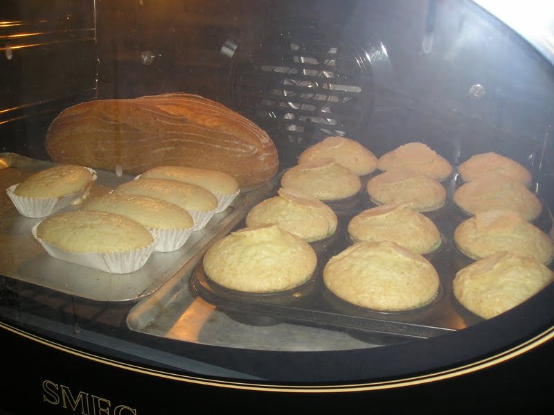 Lo de hornear las magdalenas con el pan me encanta, nunca se me habría ocurido! buena idea la de abrir el horno para que la corteza quede bien crujiente, te la copio ya! Besos
