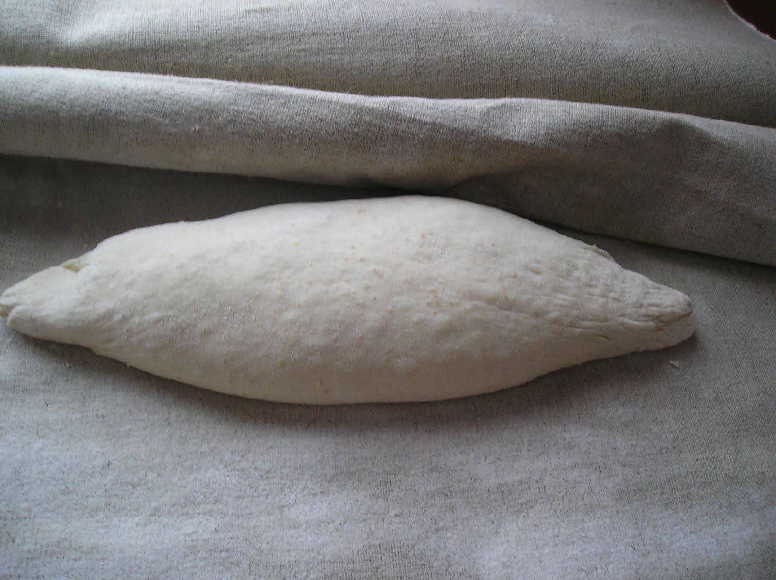 Los dos panes fermentaron en una couche hasta que se habían desarrollado aproximadamente a la mitad de su posible fermentación.