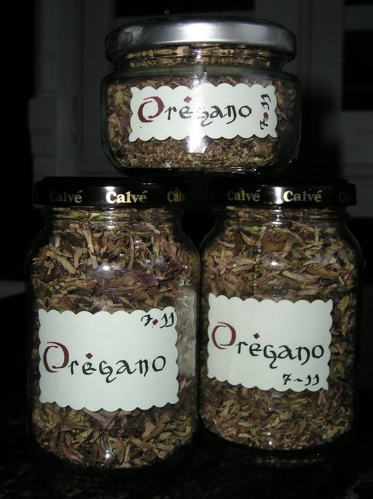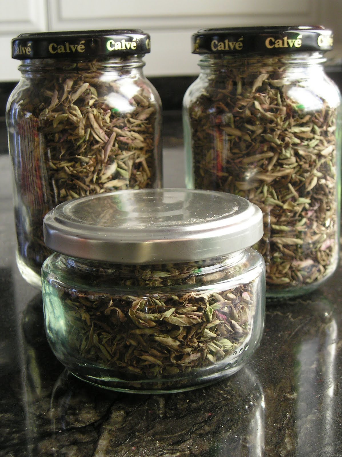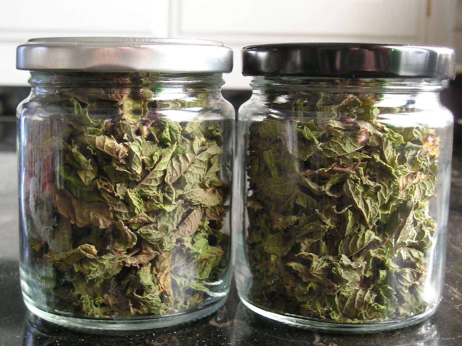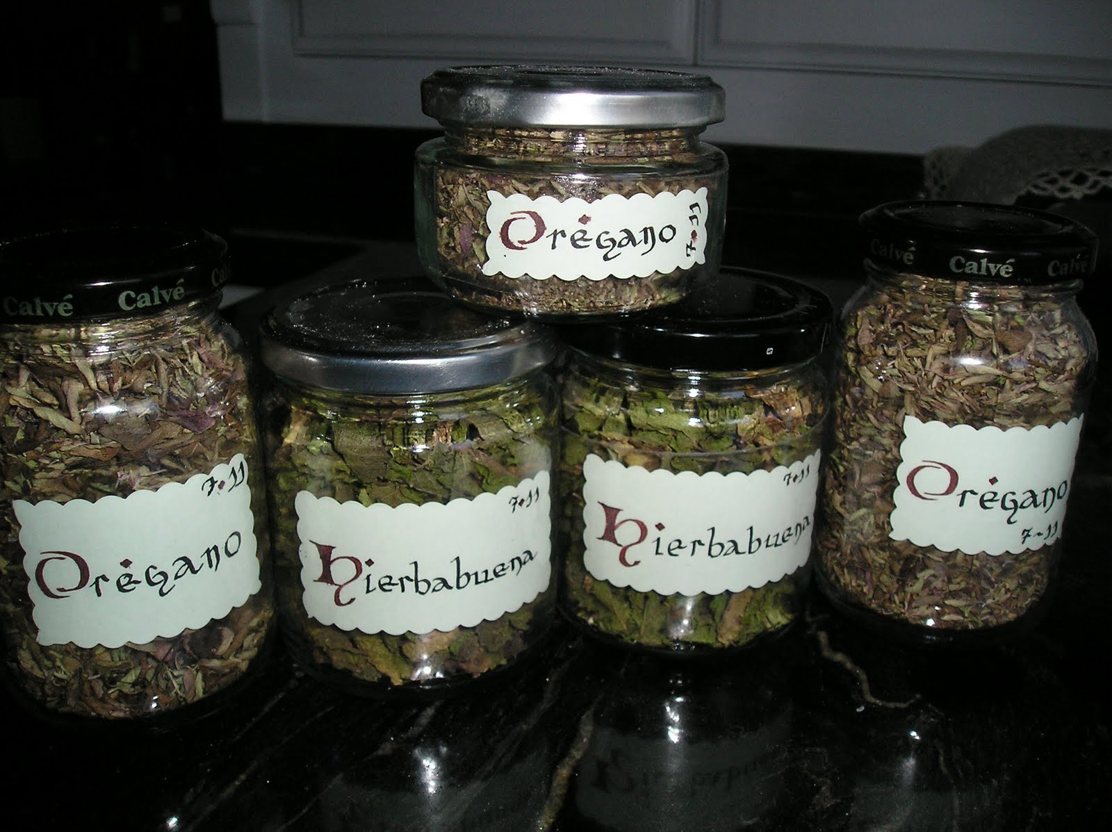 En invierno, en cambio, tengo que recurrir al horno a baja temperatura o al microondas. En este último, hay que utilizar la máxima potencia por períodos cortos (un minuto), sobre hojas de papel de cocina que absorben la humedad. Hay que cambiar las hojas varias veces y dejar enfriar las hierbas para que se sequen entre calentamiento y calentamiento. Luego se envasan y etiquetan igualmente y se conservan a oscuras.
