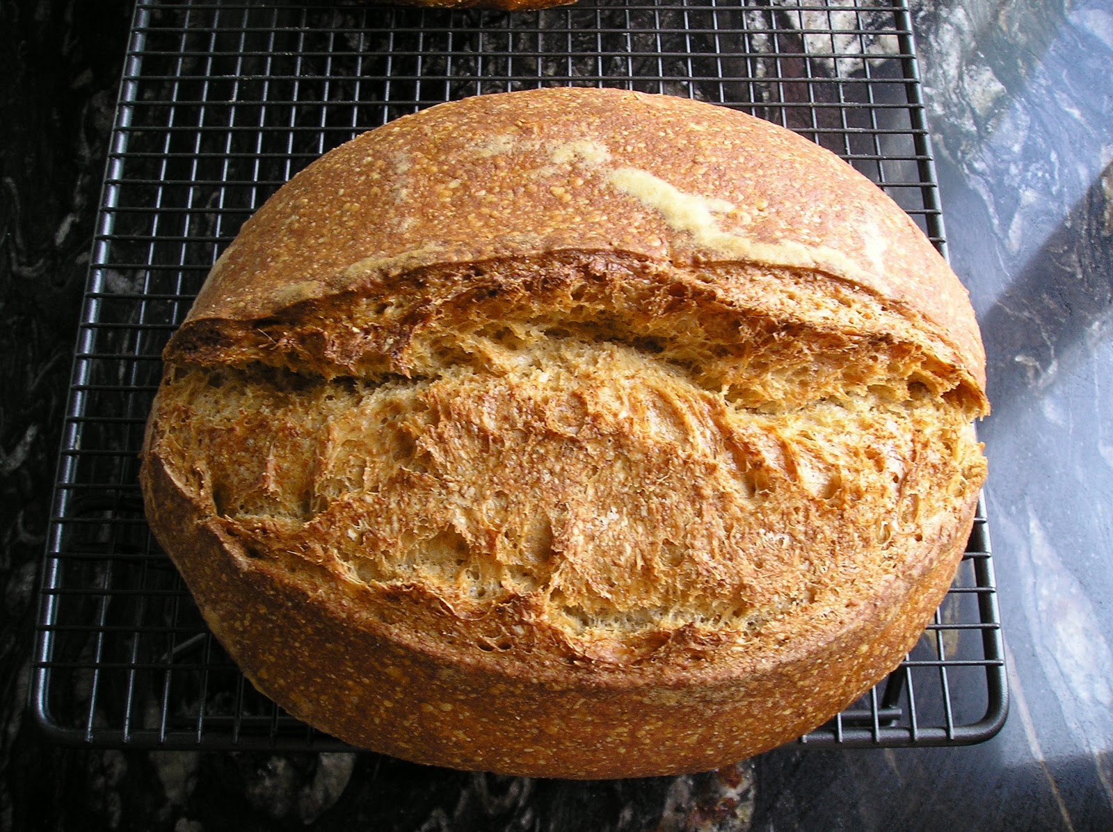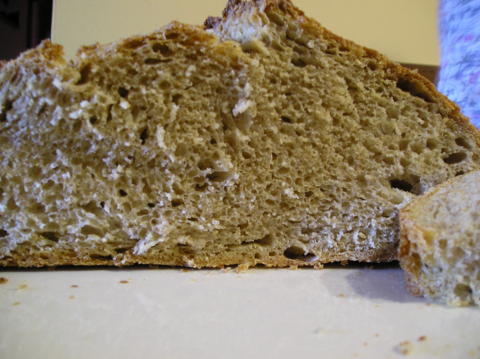 Es el tipo de pan que en el libro de Dan Lepard, Hecho a mano, denomina pan de molino (p. 30), y que es un pan de 60% harina blanca de trigo, 30% harina integral de trigo y 10% harina de centeno. No obstante, mi técnica de elaboración ha sido distinta y a menudo sustituyo la harina integral de trigo por harina integral de espelta.
