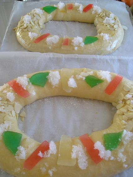 Aunque no los he subido al blog, también he hecho roscones. Al primero se me olvidó echarle azúcar, y a los otros, los metí al horno sobre la bandeja caliente,( como hago con el pan), y, en lugar de subir, se " chaflaron"…