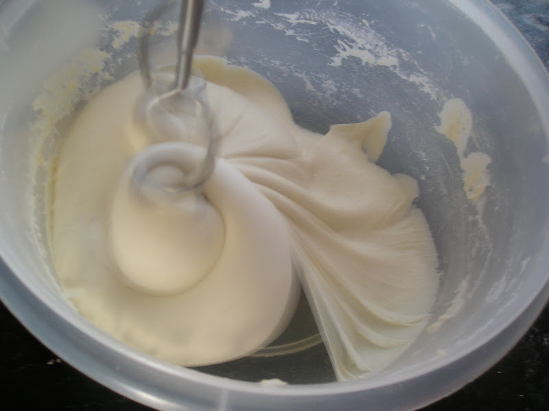 La masa resultante estará brillante, uniforme y sedosa. Al cabo de unos segundos de retirar las varillas, la superficie se igualará y desaparecerán los picos e “hilos” de masa.