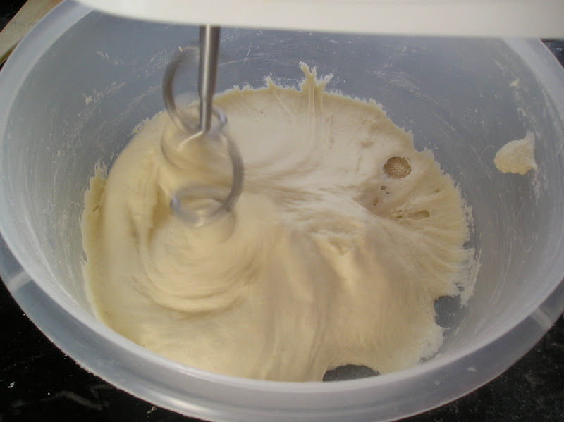 Con una batidora manual y utilizando los ganchos amasadores, amasar durante 5-6 minutos. Conviene parar a los dos o tres minutos y darle un reposo de 5 minutos a la masa (y al motor de la batidora, que estará trabajando esforzadamente por nosotros).