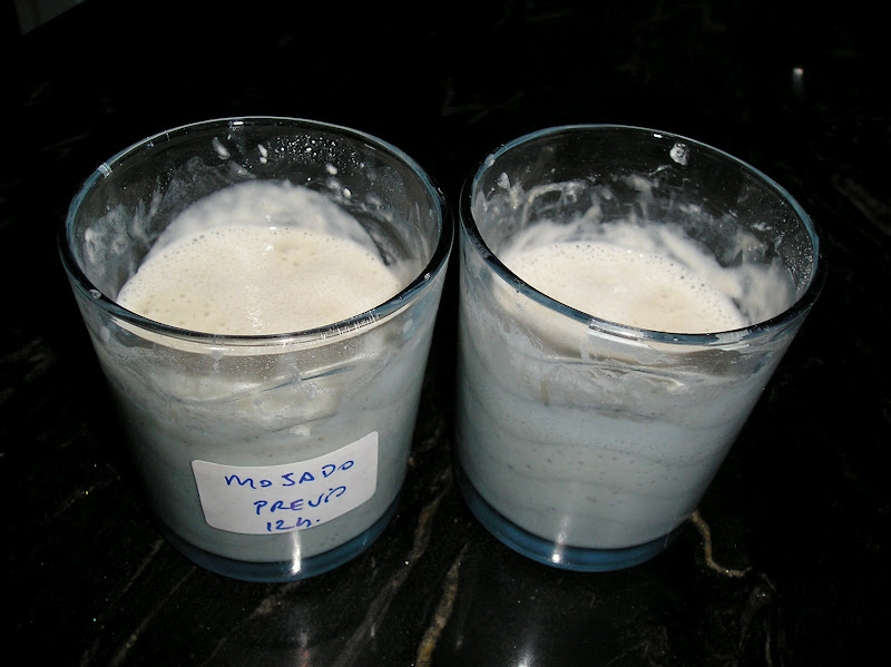 3) Vuelves a alimentar con 50 gr. de harina y 50 de agua y lo dejas femrentar como antes (a temperatura templada);