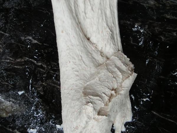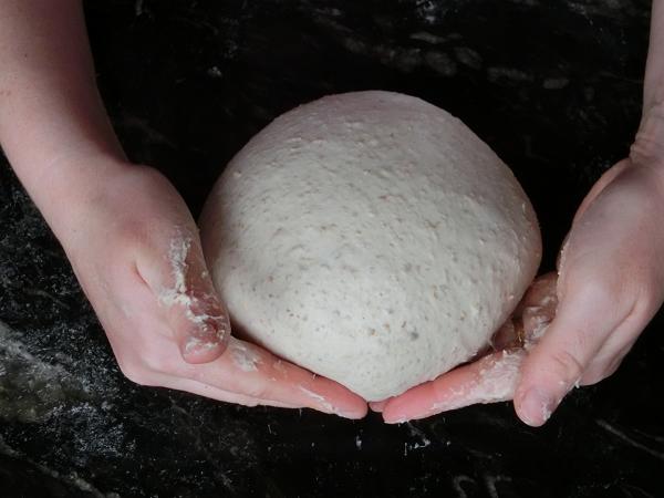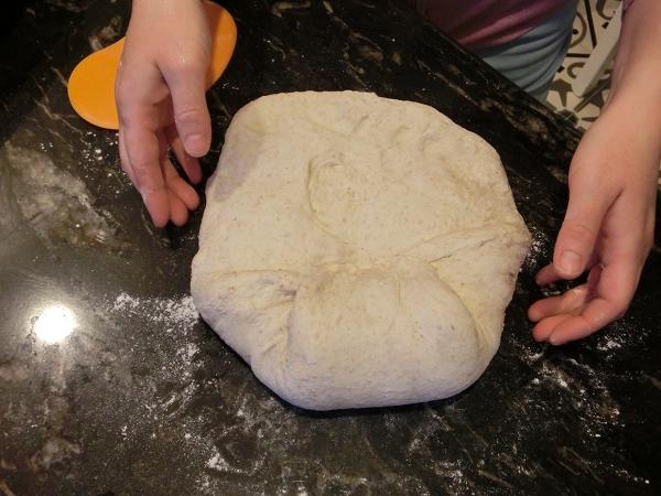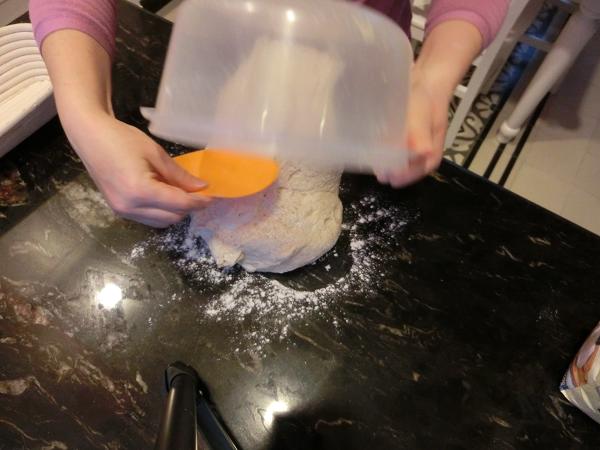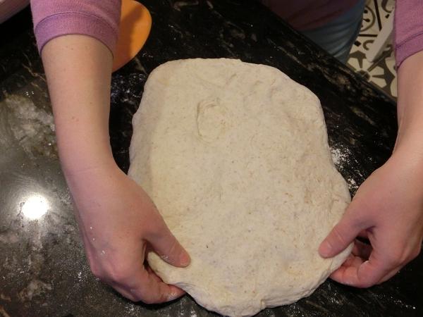 Una vez fermentada la masa, volcarla sobre la encimera ligeramente enharinada.