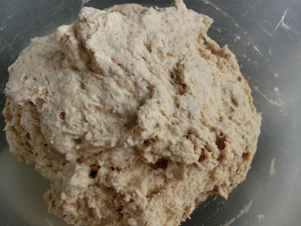 Colocar en un cuenco aceitado, cubrir y dejar fermentar 3 a 7 horas, según la temperatura ambiente.