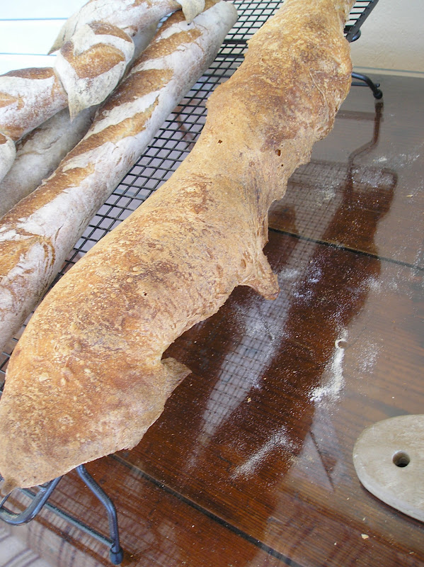 Hice tres tipos de baguetes diferentes: la tradicional, con sus cortes de “ojo”, una baguete en espiga (la tradicional épi, que no quedó muy vistosa, porque hice los cortes muy separados) y una baguete cola de dragón.