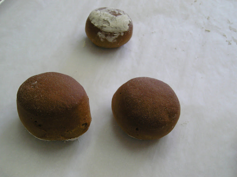 Los donuts levados sin chocolate los formamos a mano: hicimos porciones de 50 gramos (más o menos), boleamos y luego estiramos en rosquilla. Los donuts de chocolate se forman con un cortador y para ello primero se estira la masa con rodillo hasta que tenga aproximadamente 1 cm. de grosor. Con el cortador, salen unos donuts algo más pequeños, porque además de la rosquilla obtenemos unos divertidos agujeros de masa (unas bolas deliciosas para rellenar de mermelada o comer azucardas).