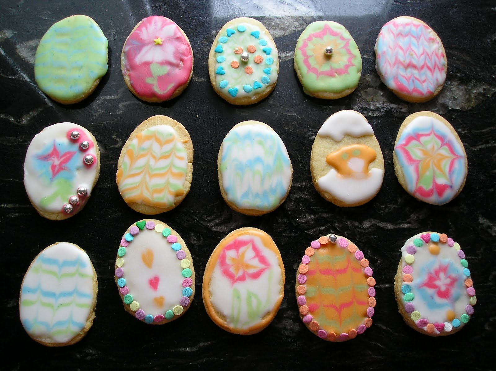 Mis hijas llevan toda la semana de vacaciones, y a duras penas hemos podido salir un par de días. No llueve, diluvia y luego cesa; y vuelve a diluviar, y así desde hace dias. Llega un momento en el que terminan … hasta los deberes. Y ya hemos jugado al monopoly, a los pokemon, …¿Qué nos queda? Pues hacer galletas y decorarlas como regalo de Pascua para los abuelos. Y a eso nos hemos puesto. Con un cortador de huevo, otro de mariposa y un tercero de osito, hemos hecho estas preciosidades. Aquí teneis una pequeña selección.