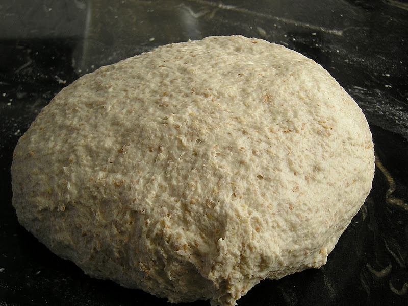 Amasar nuevamente 2 minutos. Dejar la masa cubierta durante 20 minutos. Volver a amasar 2 minutos la masa. Darle forma de bola con buena tensión superficial y colocadla en el cuenco tapada, para que leude. Estas son las fotos del proceso.